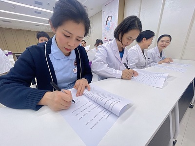 在全体人员的见证下,各科室、部门的医务人员代表有序上前,在承诺书上庄重地签下自己的名字。
